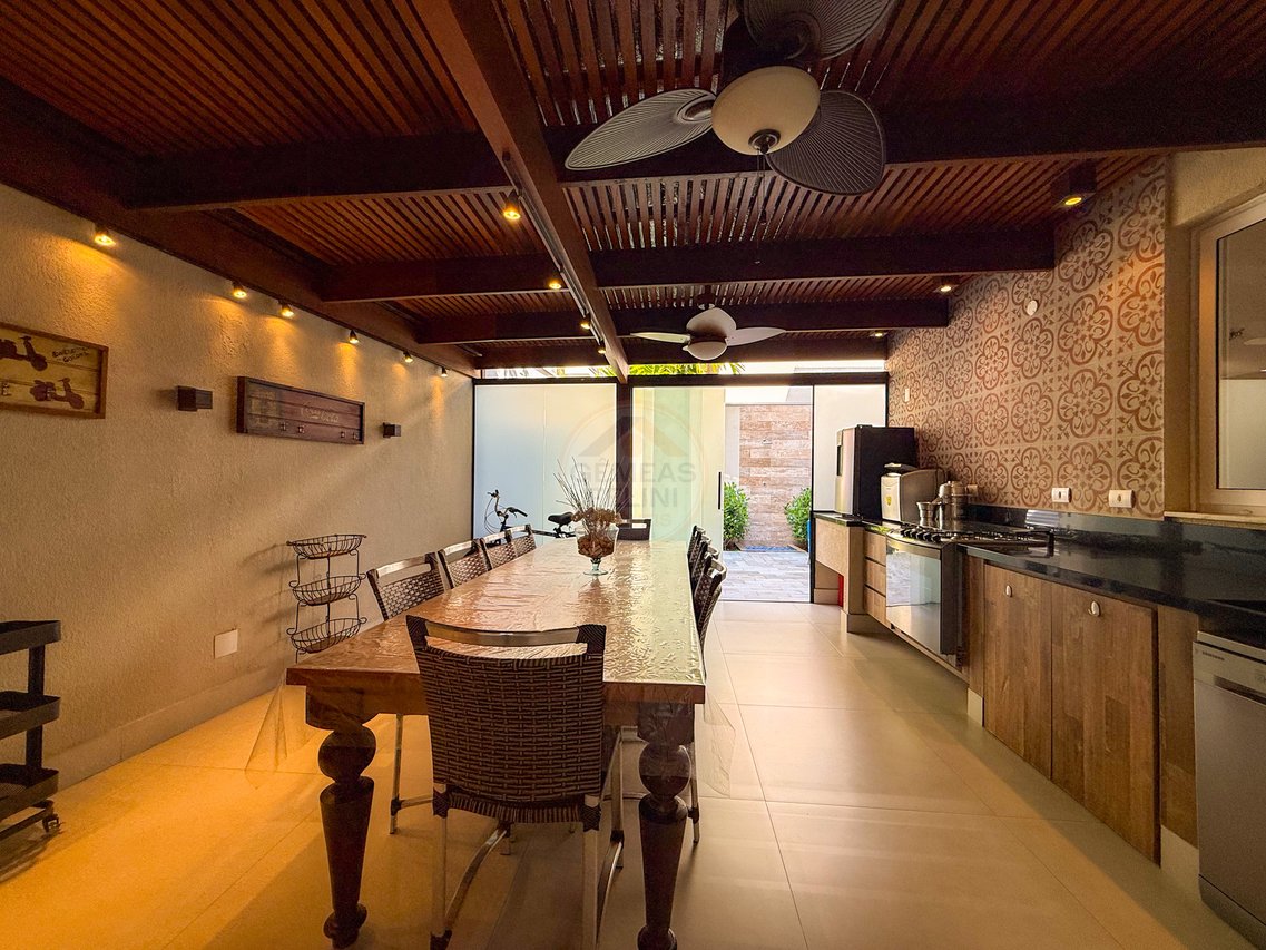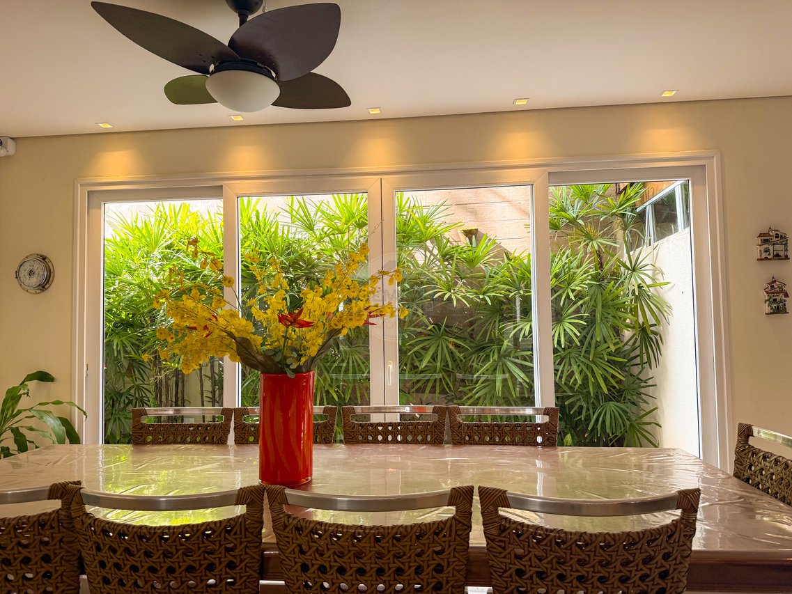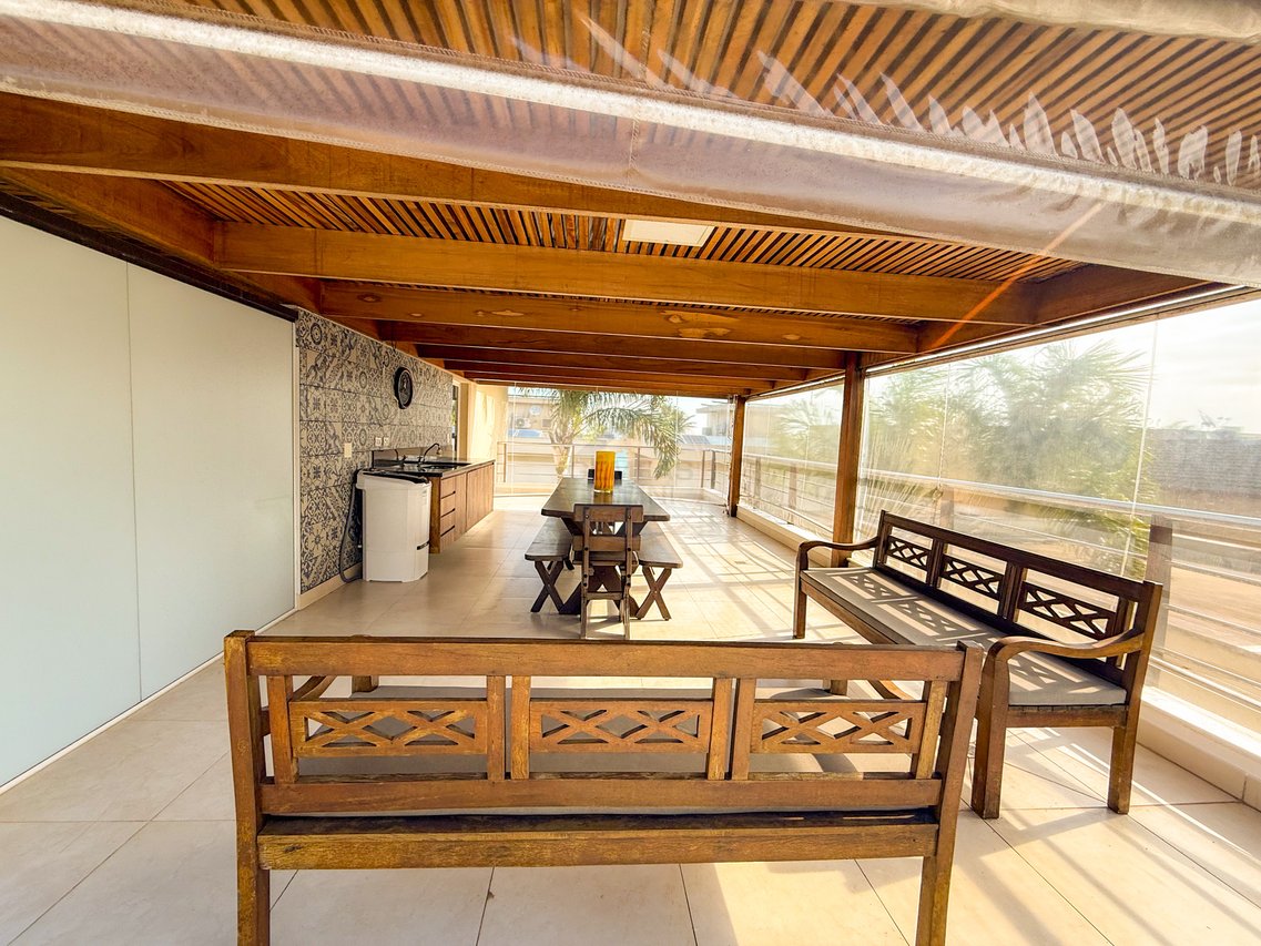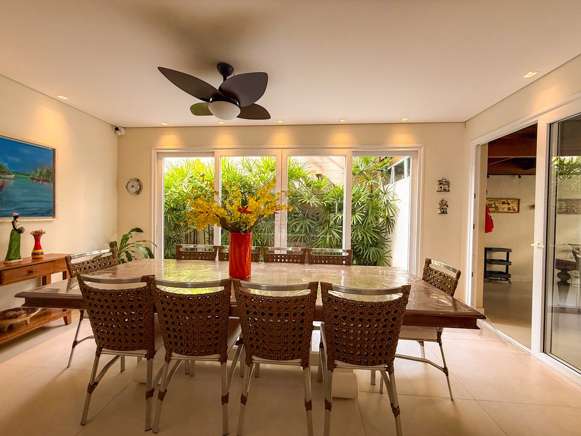 São 5 suítes climatizadas, perfeitas para acomodar família e amigos com conforto. Os ambientes integrados de sala de estar e jantar proporcionam convivência agradável e elegante. Ideal para quem busca tranquilidade, privacidade e uma experiência completa de lazer à beira-mar.